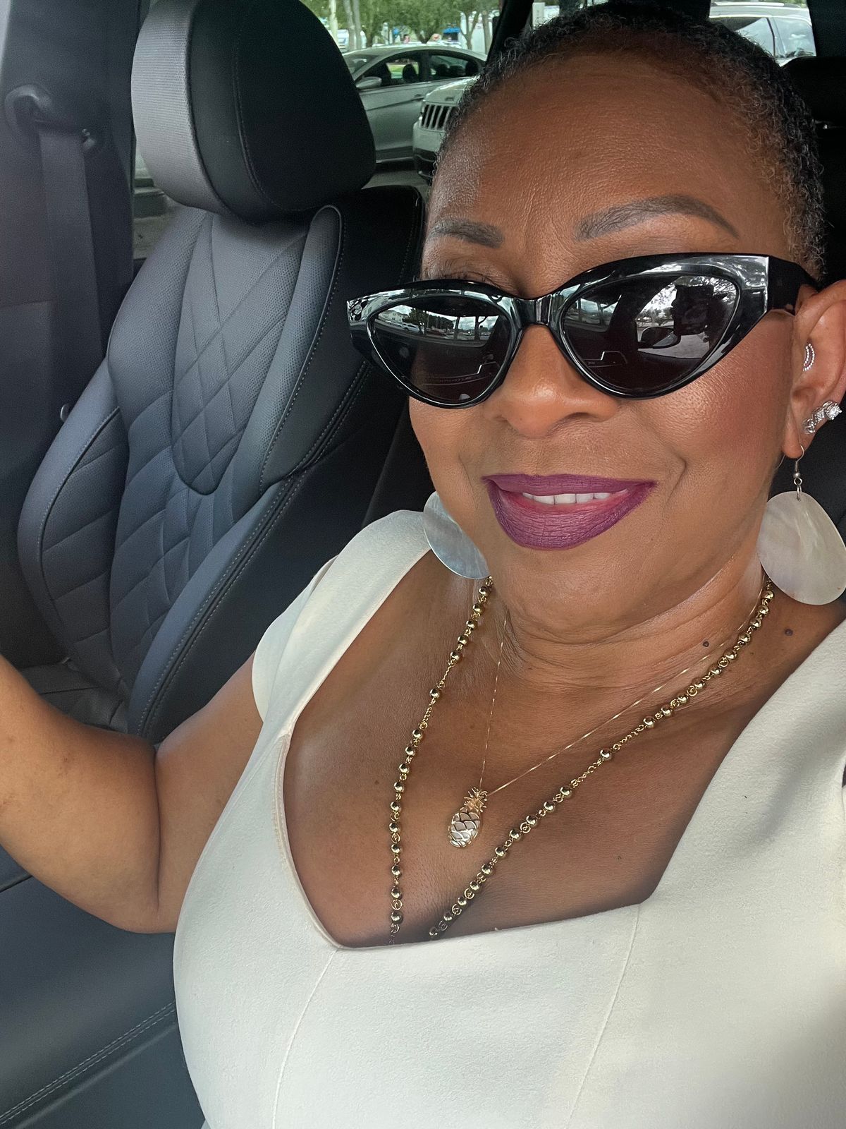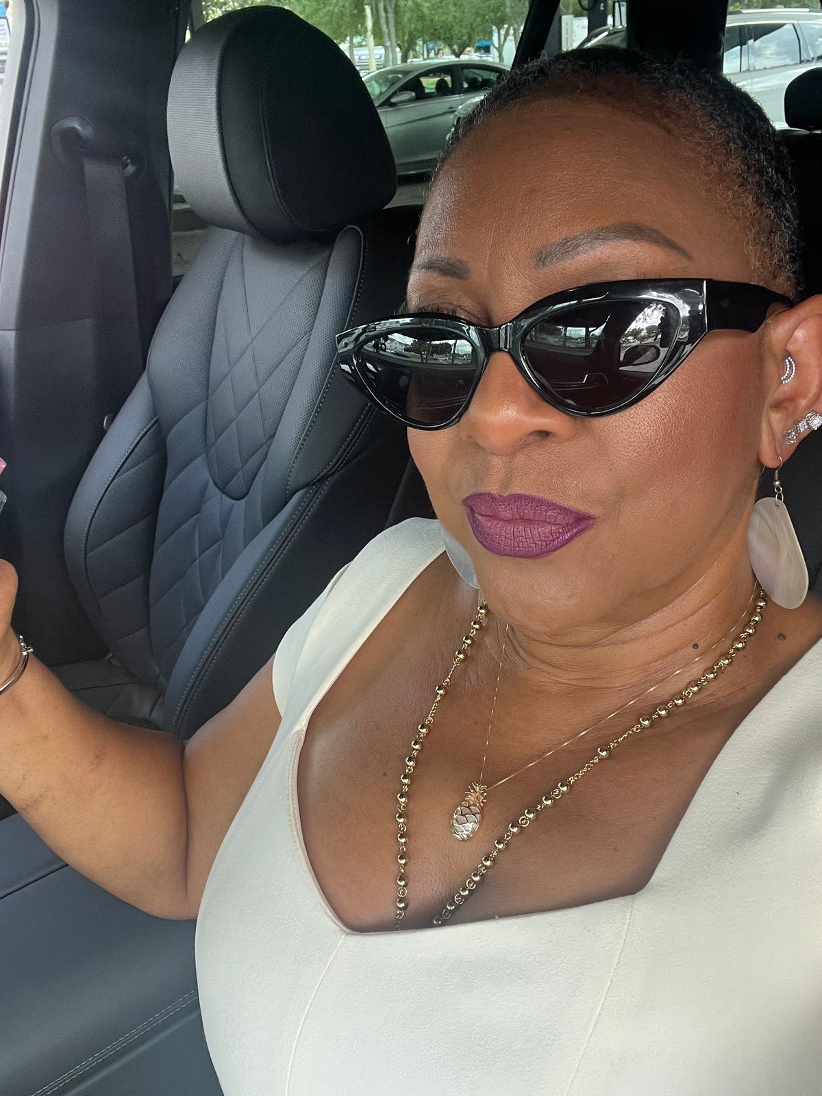 customer content - helenelane_ les do makeup x dime optics featuring last call cat eye sunglasses with a black frame and grey polarized lenses front view